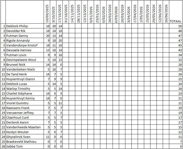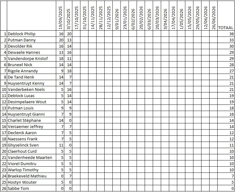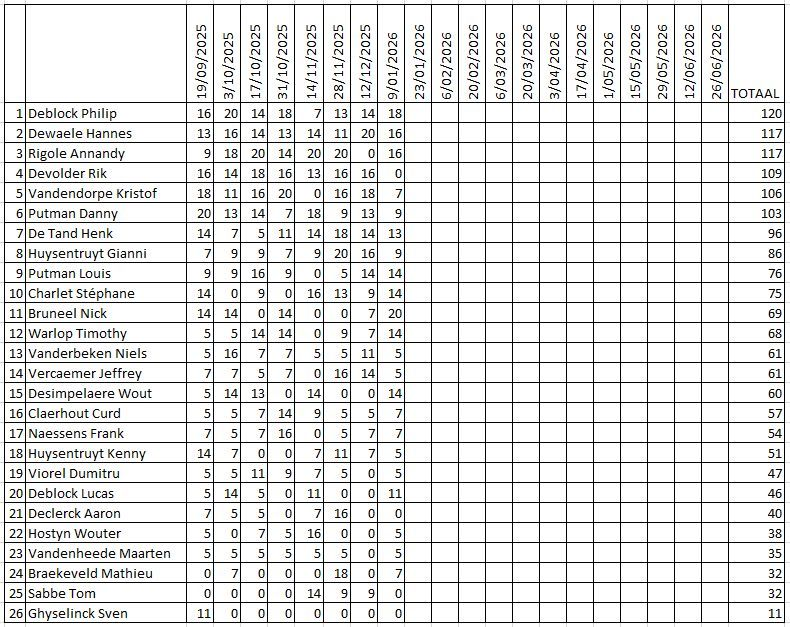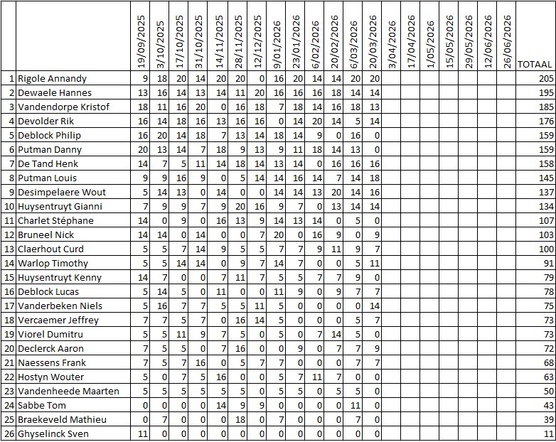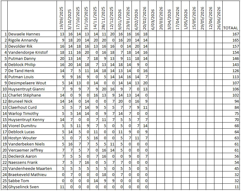 Iedereen dient zich aan te melden tussen 19u00 en 19u20.