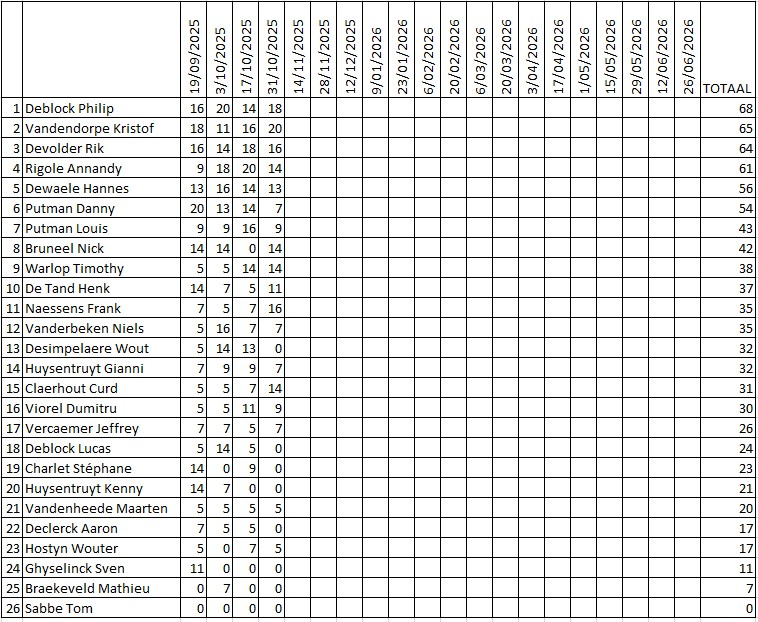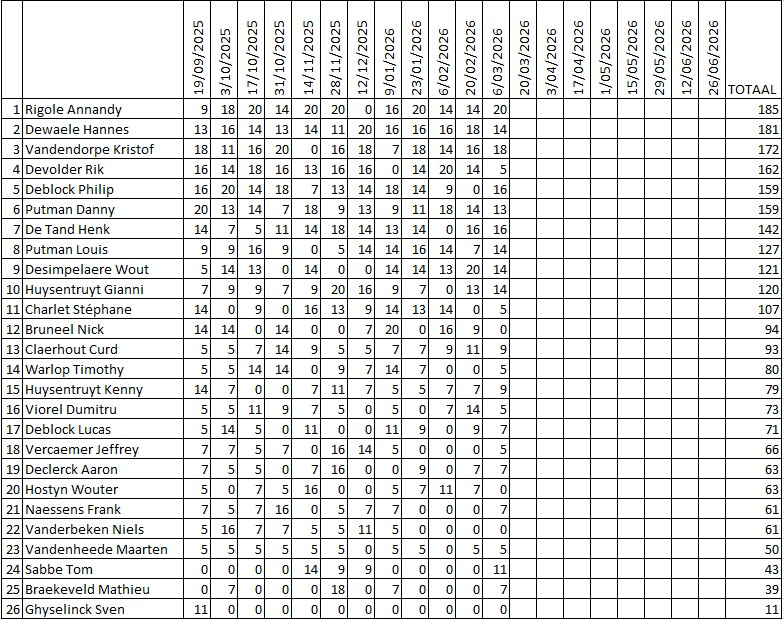 Iedereen dient zich aan te melden tussen 19u00 en 19u20.